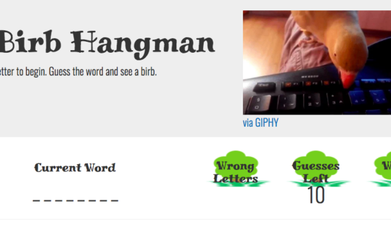 Typing is the primary user interface in this app. Embedding Giphy images really brings Birb Hangman to life. Working on this project highlighted the difficulty of handling both desktop and mobile keyboard inputs in a single app.